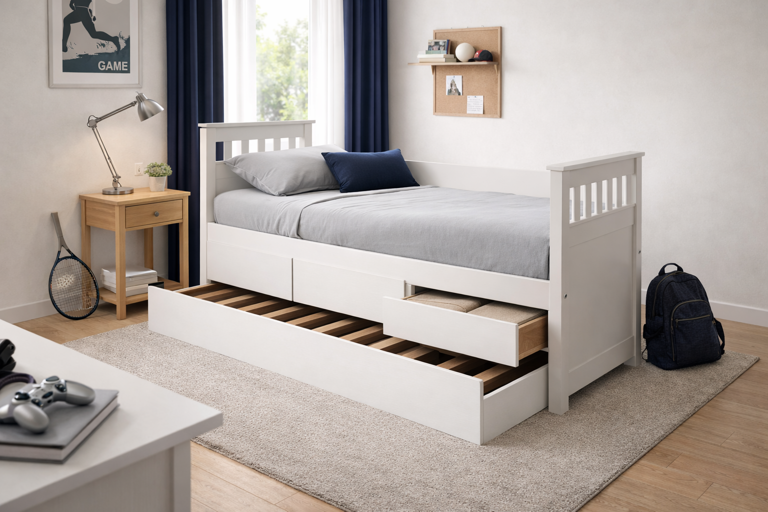 Cama 1 plazaaza capitan, con 3 cajones y carro cama