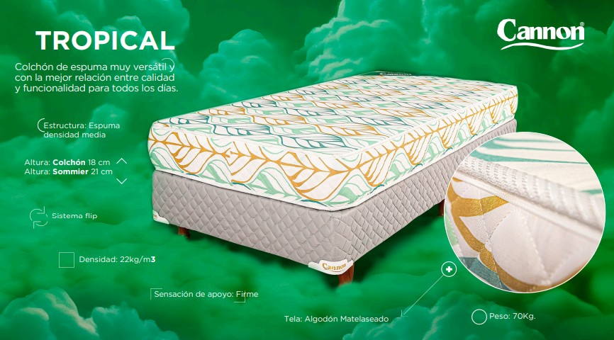 COLCHON 0,80 X 1,90 X 18 TROPICAL SABANA MATELASEADO densidad 22 kg