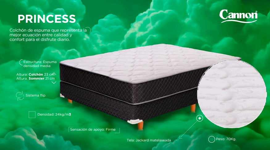 COLCHON 1,00 X 1,90 X 23 PRINCESS TODO MAT.TELA JACKARD 24 KG X M3 ESPUMA