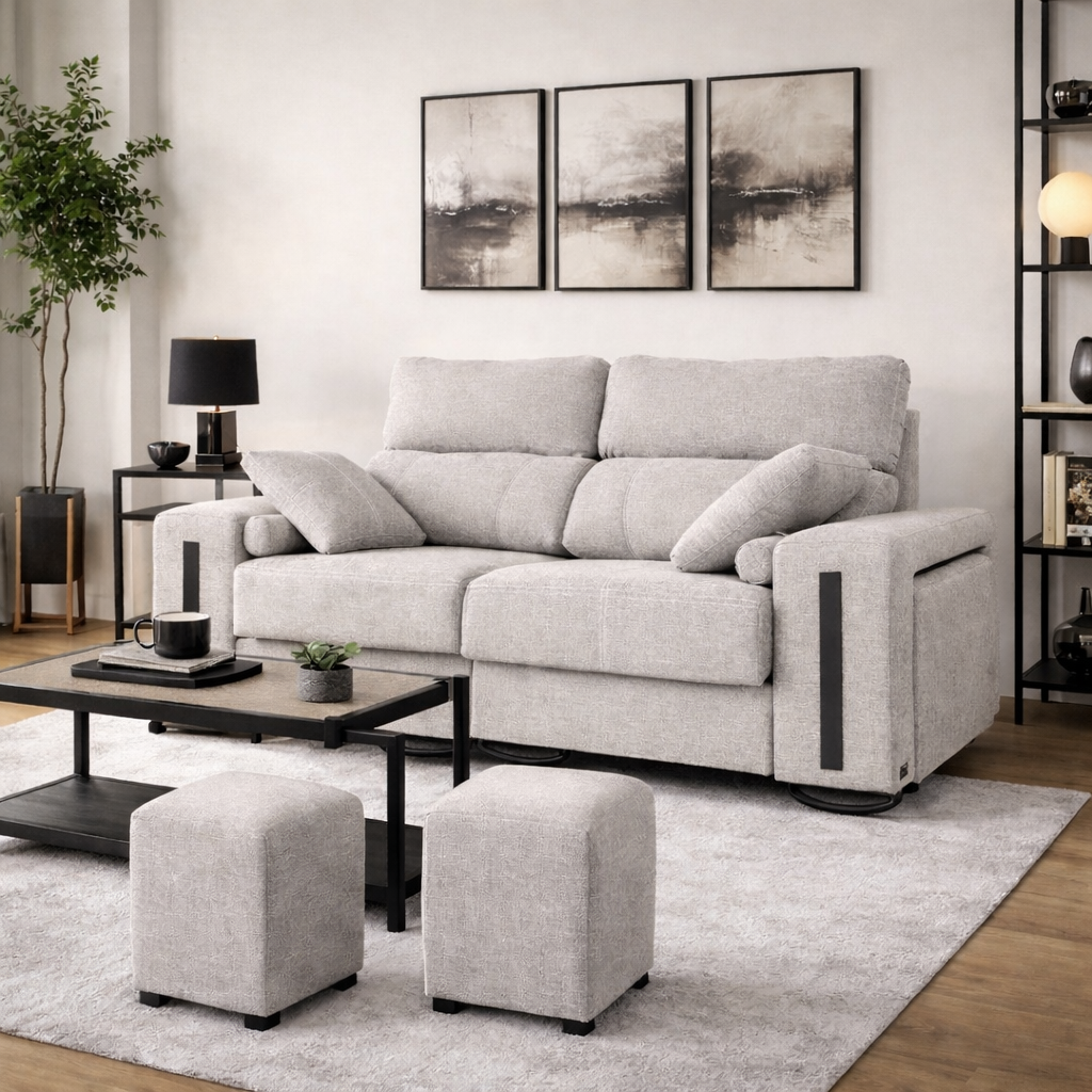 SOFA 3 CPOS THIARA ACCESORIOS NEGROS 2,10 mt