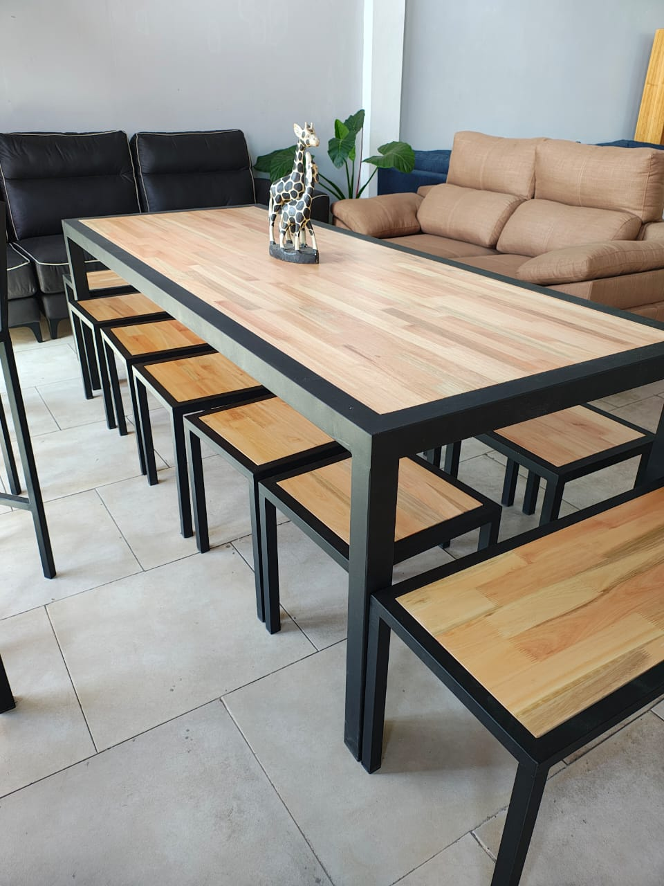 Mesa 2,40 x 0,95 euca pata industrial hierro macizo + 12 bancos ( combo)