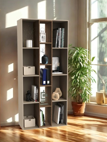 Biblioteca 0,80 mt alta abierta 10 estantes davos -arcilla cyber