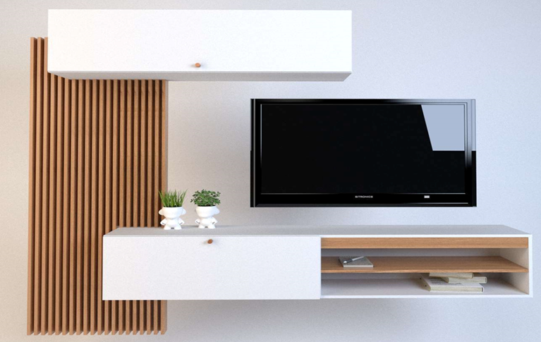 CENTRO ENTRETENIMIENTO 3 PIEZAS PARA COLGAR - FONDO PANEL VARILLADO
