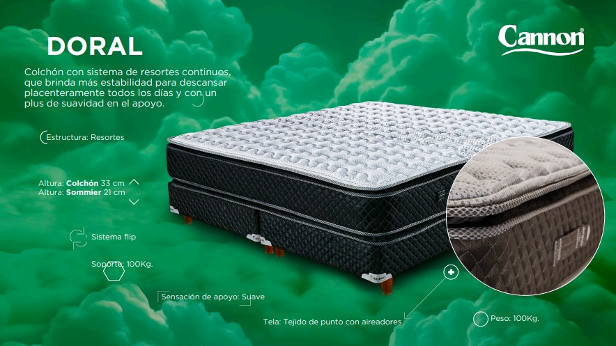 COLCHON 1,40 X 1,90 X 33 DORAL PILLOW TELA TEJIDO DE PUNTO