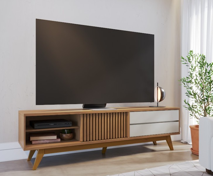 RACK 2,00 RECIFE - 1 PUERTA CORREDIZA VARILLADA, 2 CAJONES-PATA NORDICA